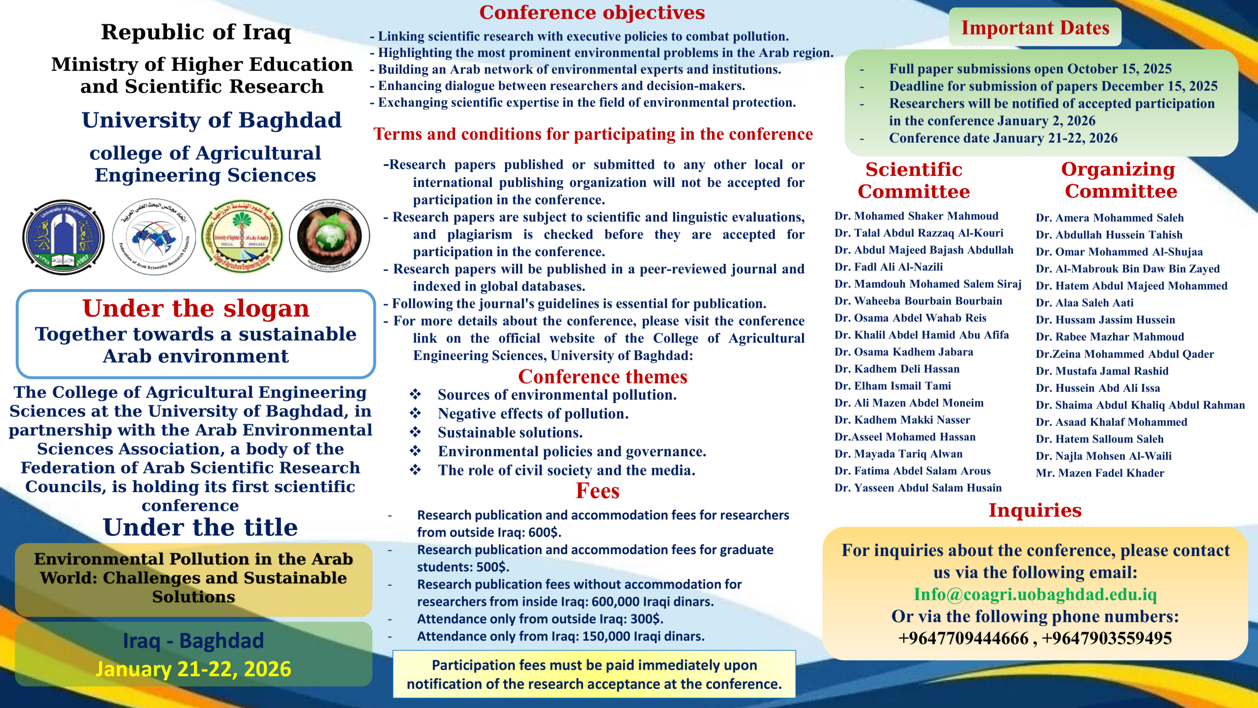 For more information, please visit the official website of the College of Agricultural Engineering Sciences, University of Baghdad, or contact us via:
