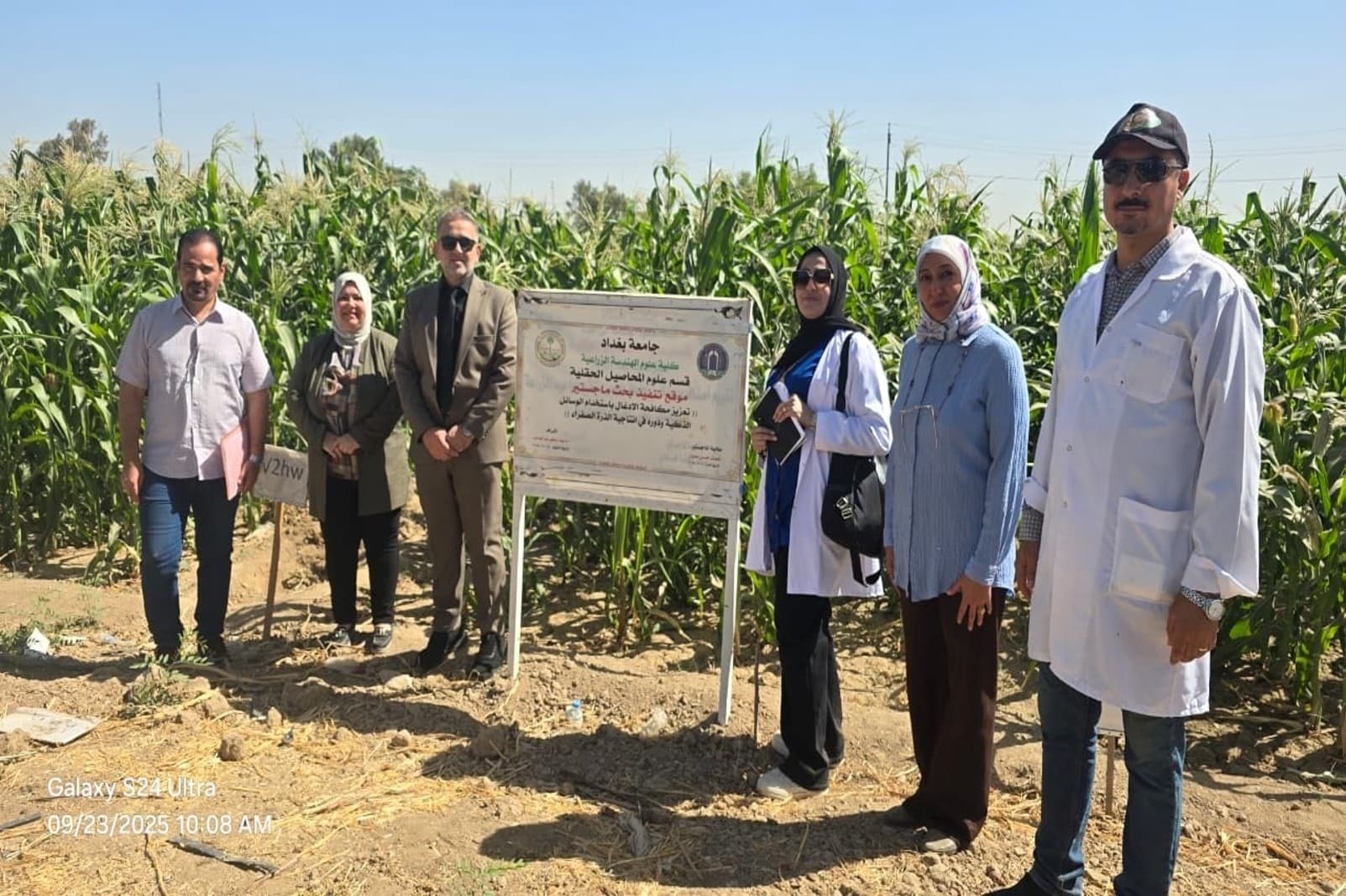 In line with the Sustainable Development Goals for quality education, a committee composed of several faculty members from the Department of Field Crops conducted a field visit to review the experiment of Master’s student Nemat Hasan Alwan. Her research is entitled “Enhancing Weed Control Using Smart Methods and Its Effect on Maize Productivity”, under the supervision of Prof. Dr. Suhad Madhkoor Abdul Sahib.