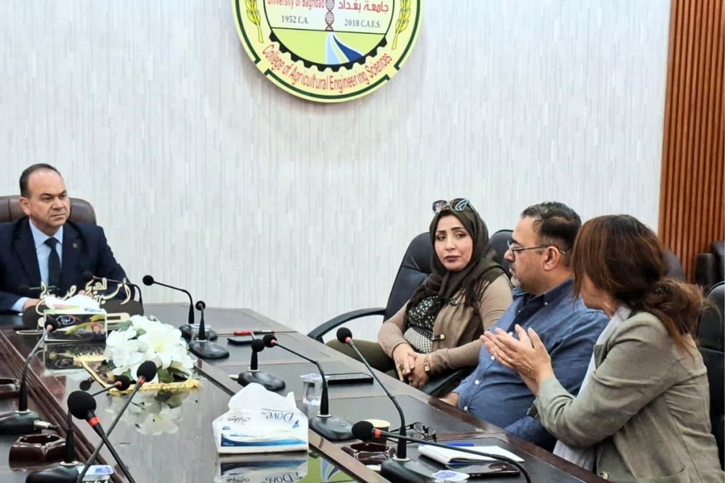 A delegation from the College of Media at the University of Baghdad, headed by Dr. Irada Zaidan and Mr. Omar Faez, along with a group of fourth-year media students, visited the College of Agricultural Engineering Sciences. The visit supports the Sustainable Development Goals related to sustainable cities and communities, partnerships for achieving environmental objectives, and innovations that contribute to environmental protection. Discussions focused on the project of waste recycling and its sustainable utilization, as well as identifying obstacles and exploring solutions to ensure its successful implementation.