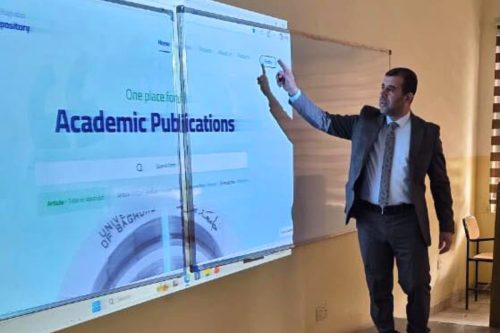 The Department of Soil and Water Resources at the College of Agricultural Engineering Sciences organized a scientific visit to the General Authority for Meteorology and Seismology, one of the formations of the Ministry of Transport. The visit aimed to strengthen students’ practical skills and connect academic study with technical applications in the fields of meteorology and seismic monitoring. The activity targeted second-year students from the Department of Animal Production as part of a field scientific visit to learn about the nature of the Authority’s work and its technical and operational divisions. The students were accompanied by Dr. Hadeel Amer Jabbar, faculty member in the department.